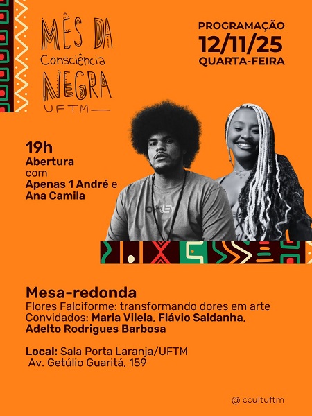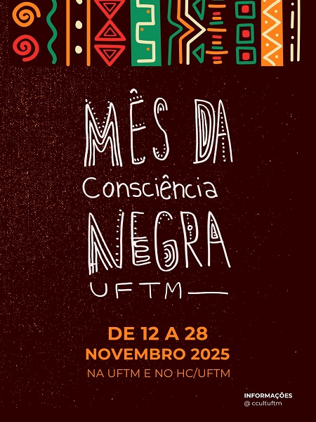 A Universidade Federal do Triângulo Mineiro (UFTM) promove, de 12 a 28 de novembro, o evento Mês da Consciência Negra, uma série de atividades culturais, artísticas e formativas que celebram a cultura africana e afro-brasileira, com objetivo de promover reflexão, diálogo e valorização da diversidade. Todas as atividades são gratuitas e abertas à comunidade interna e externa. Haverá emissão de certificado de participação.