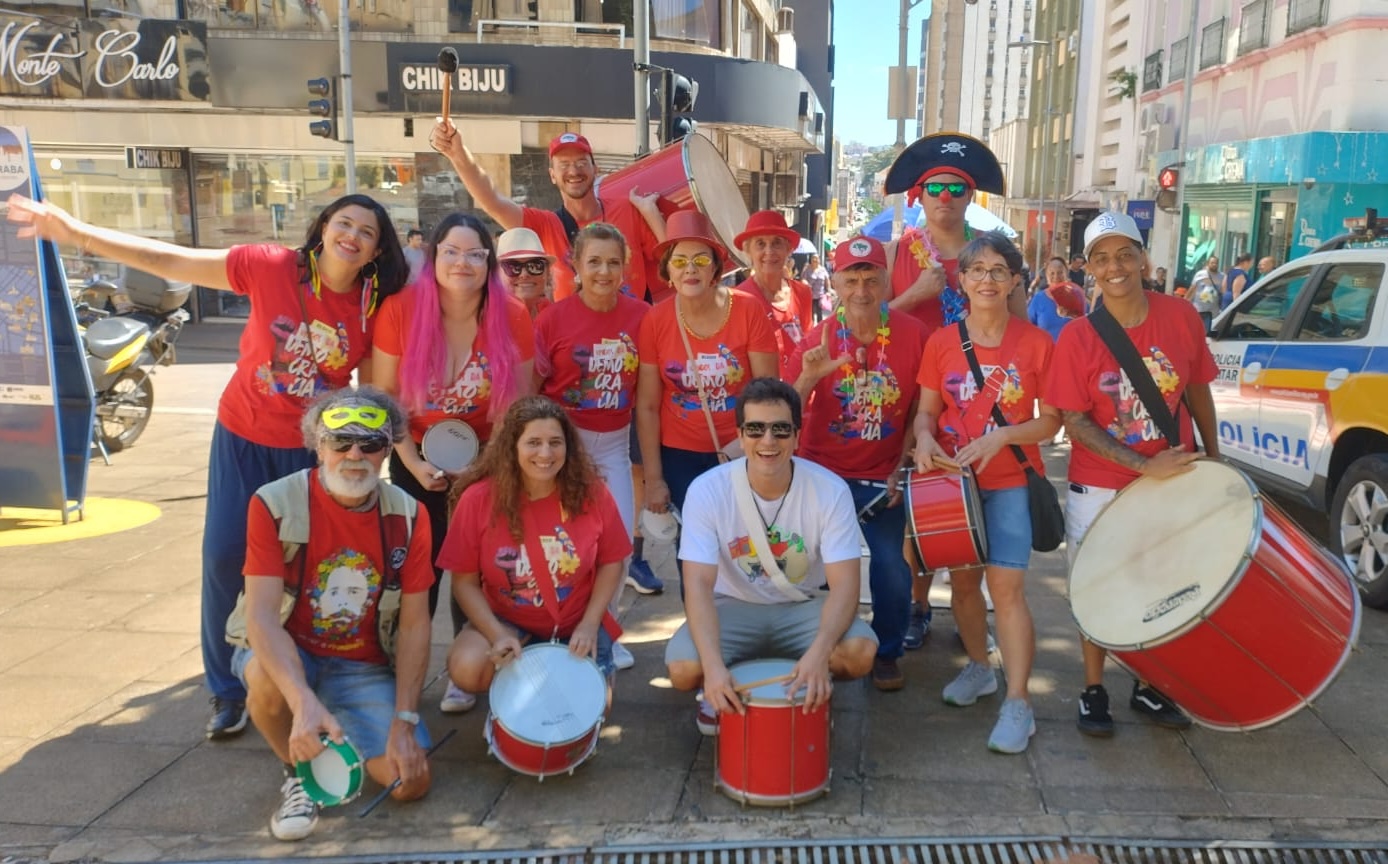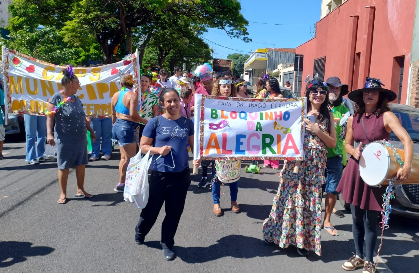 Usuárias e usuários dos serviços da Rede de Atenção Psicossocial (RAPS) de Uberaba, familiares, acadêmicas e acadêmicos da UFTM, a comunidade em geral e o Bloco Unidos da Democracia participaram do cortejo do Maria Boneca.