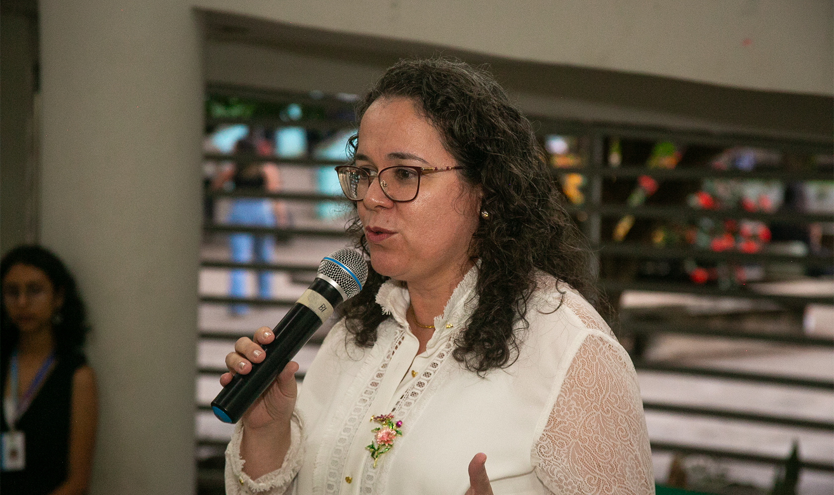 Professora Dra. Luciana Teixeira discursando na cerimônia de inauguração do banco (Foto: Heron Félix)