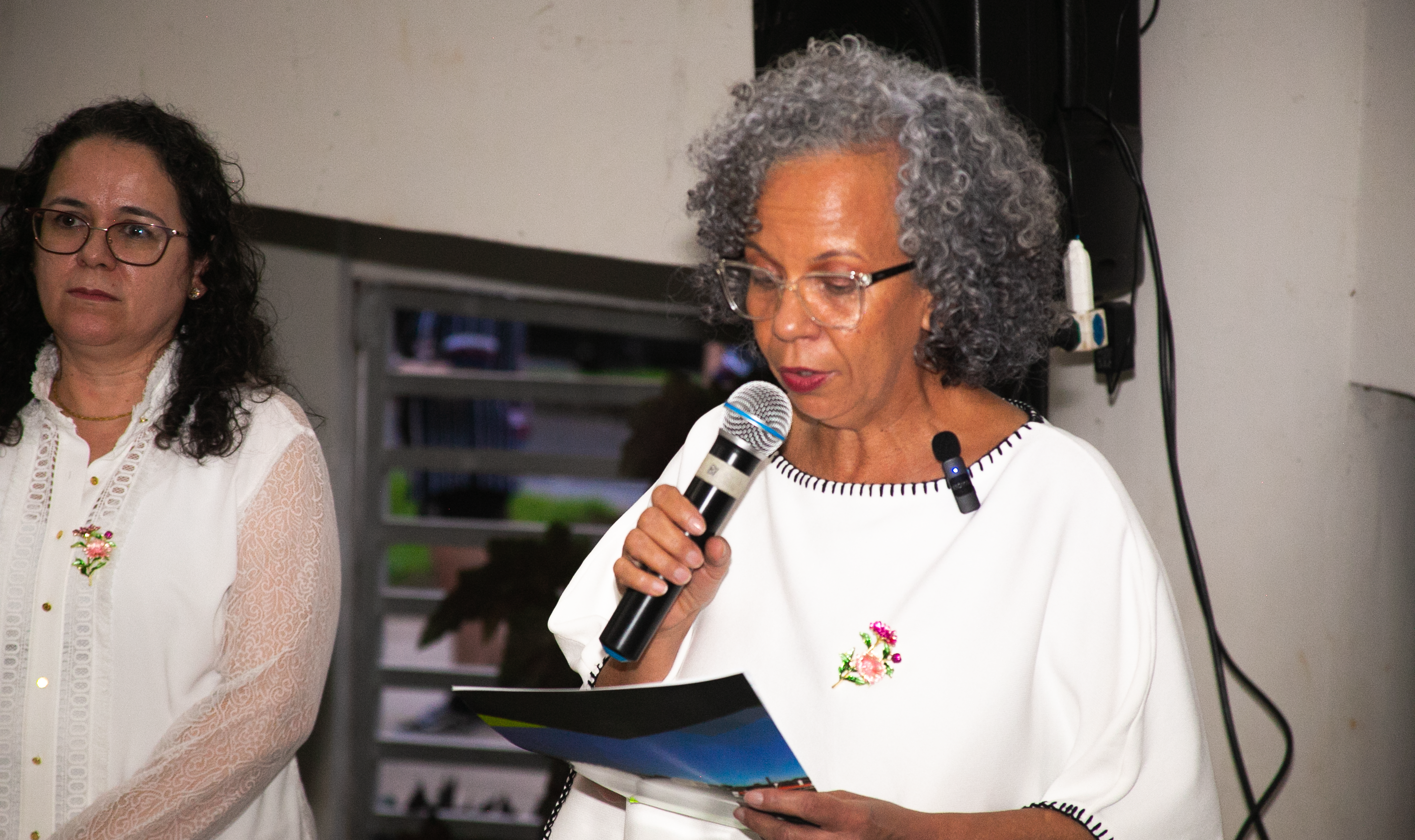 Reitora realiza leitura de crônica autoral sobre a campanha "Banco Vermelho" (Foto: Heron Félix)