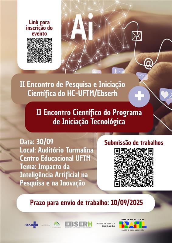 Dia 30 de setembro acontecerá, no Auditório Turmalina,  o II Encontro de Pesquisa e Iniciação Científica do HC-UFTM/Ebserh e o II Encontro Científico do Programa de...