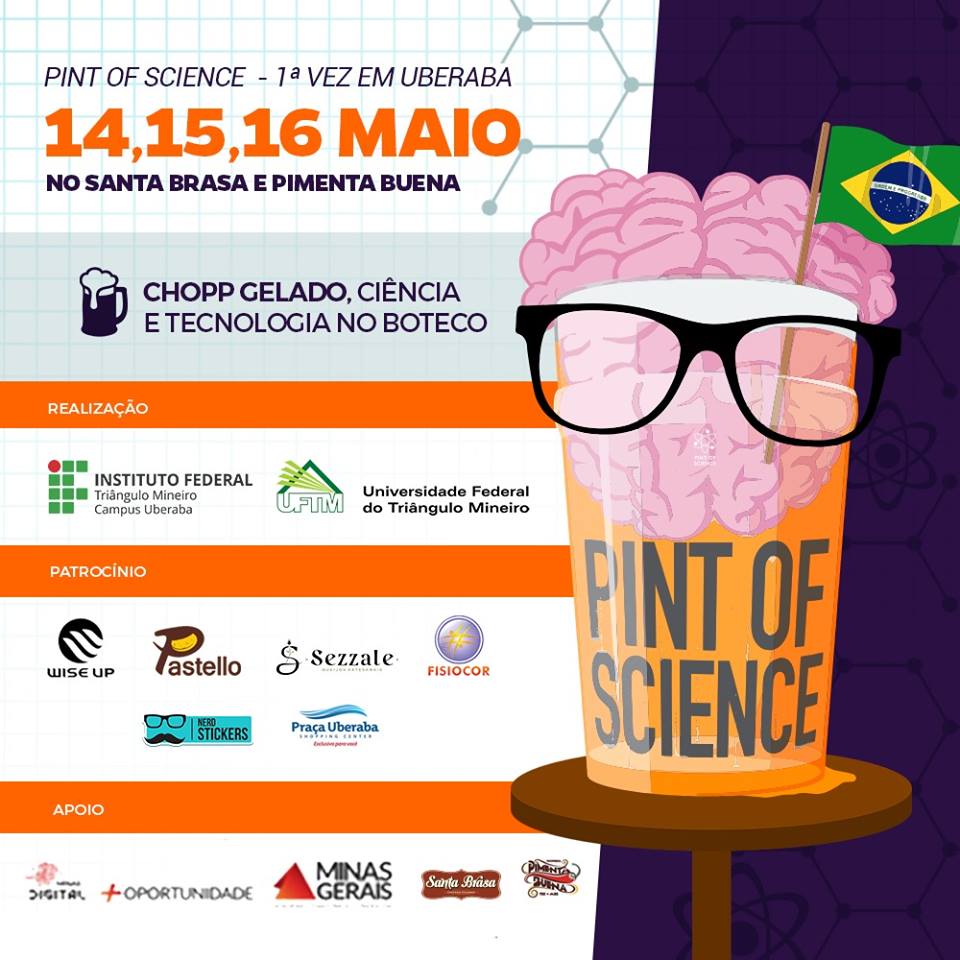 A UFTM, em parceria com o IFTM, participará do Pint of Science pela primeira vez. Em Uberaba, a programação acontece no Pimenta Buena e no Santa Brasa Choperia e Restaurante, nos dias 14, 15 e 16 de maio, das 19h30 às 21h. Os temas de cada noite serão abordados por professores da UFTM, do IFTM, da UFLA e da Uniube.