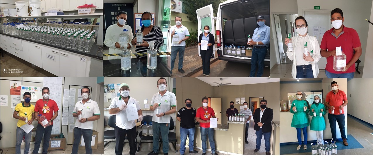 Segundo o professor Lucas, o desenvolvimento do projeto só foi possível, graças às parcerias da Usina Coruripe, que faz a doação da matéria prima principal, o álcool etílico; do Rotary e Sicoob que possibilita a aquisição de glicerina e frascos e garantiu a ampliação das dimensões do projeto. Muitos servidores da UFTM também têm contribuído com doações e a mão de obra. A produção e o envase são feitos por servidores da área de Química e a rotulagem executada por servidores voluntários. O produto distribuído tem a mesma eficácia do álcool em gel 70%. A Glicerina adicionada a 2%, conforme a instrução da Organização Mundial de Saúde, atua como hidratante, evitando o ressecamento da pele e o aparecimento de feridas nas mãos dos usuários.
